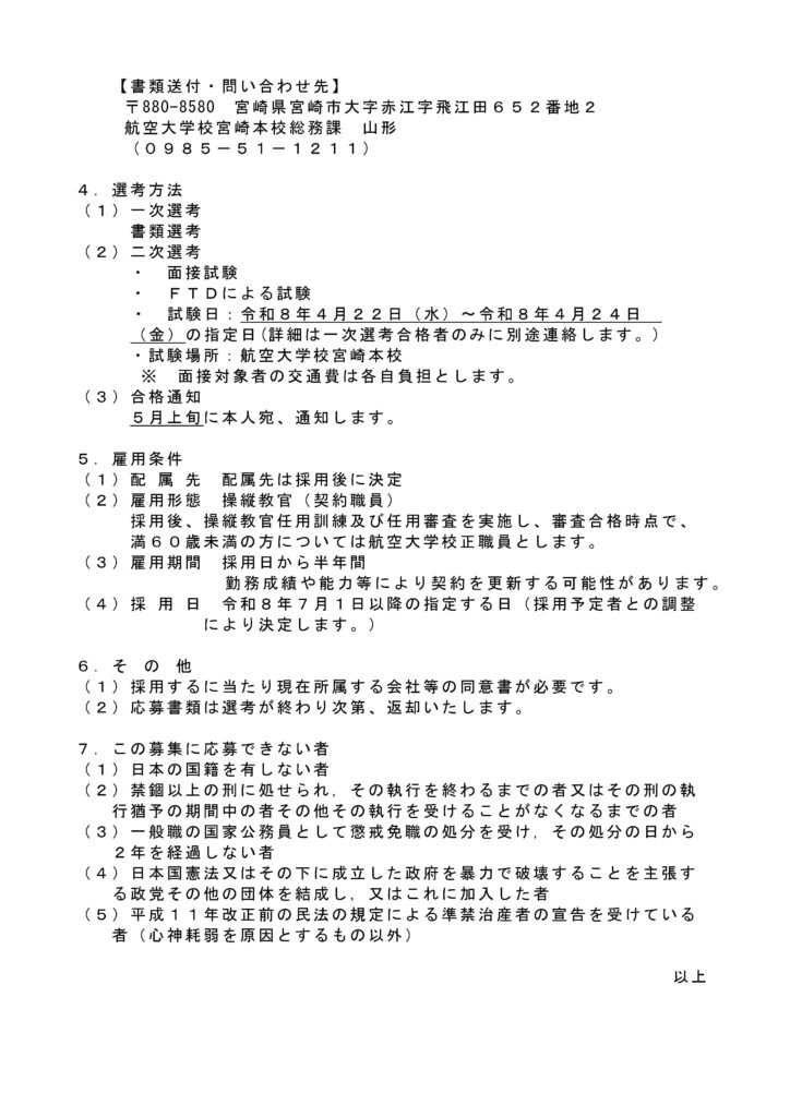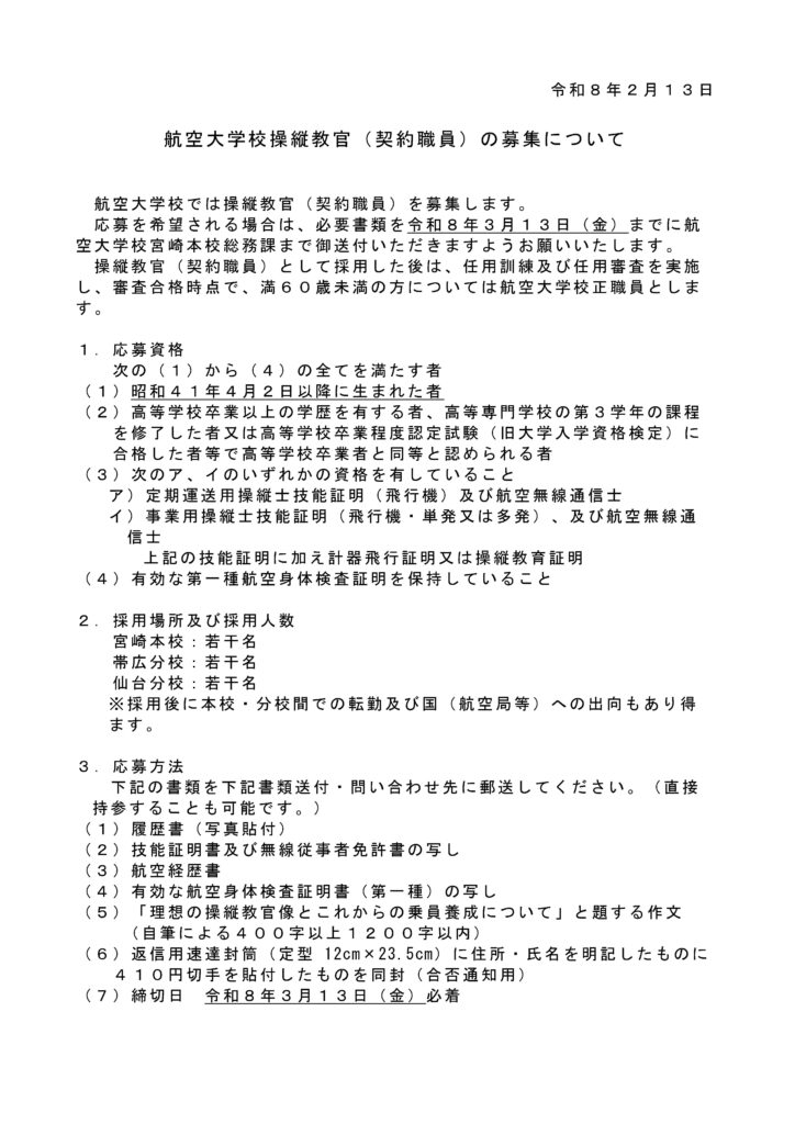 エアラインパイロットを養成している独立行政法人「航空大学校」から操縦教官を募集している旨の周知を依頼されました。当協会は昨年開催された航空局主催の「女性活躍推進ワーキンググループ」の一員であり、女性パイロットを増やしていくためには、女性教官が必要である旨の主張を展開しております。航空大学校としても女性教官について積極的に推進していく意図があります。詳しくはhttps://www.kouku-dai.ac.jp/へ。